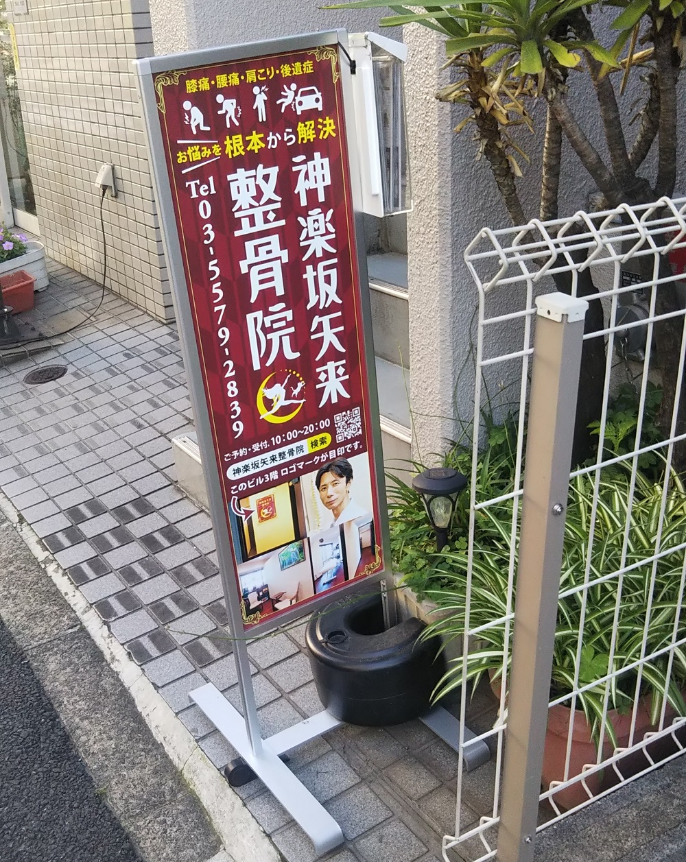 神楽坂矢来整骨院の新しい看板が到着しましたので、